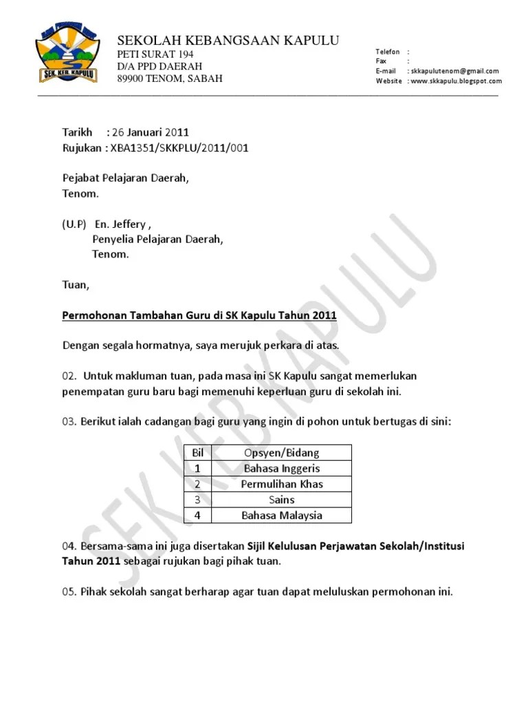 Contoh surat rayuan pertukaran penempatan kkm precision, contoh surat.